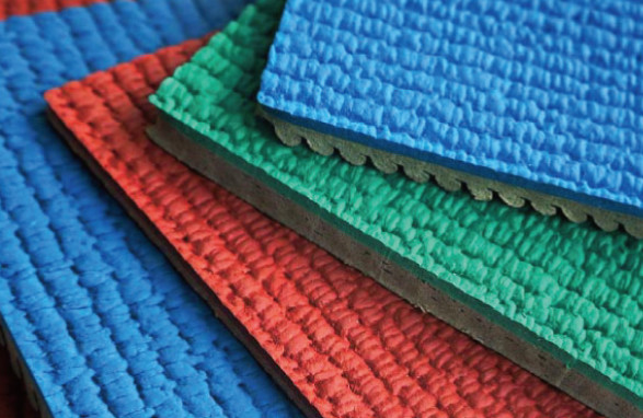 The friction layer is a color composite rubber, which has longlasting resistance to ultraviolet light, variable weather and meteorological conditions. The concave and convex pattern surface layer design has excellent anti-slip, anti-tip, anti-wear and anti-reflective effects.The bottom layer is made of a flat structure, which allows the shock-absorbing bottom layer to be completely bonded to the foundation.